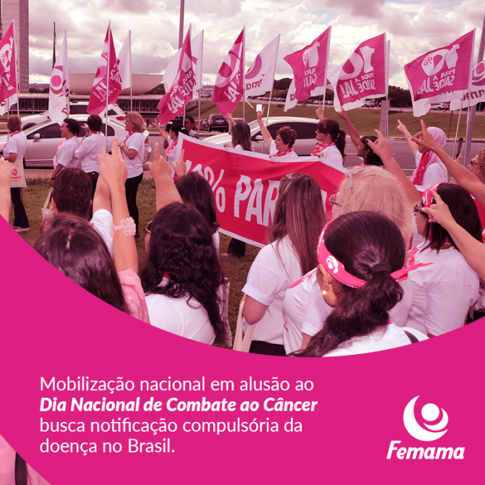 Representantes de diversas ONGs associadas à FEMAMA em todas as regiões do Brasil protocolaram com deputados estaduais ontem, 24 de novembro, um ofício que tem como objetivo alertar sobre a necessidade da adoção da notificação compulsória do câncer no estado. A entrega faz parte da mobilização promovida pela FEMAMA em todo País em alusão ao Dia Nacional de Combate ao Câncer, com o objetivo de alertar parlamentares sobre a necessidade da adoção do registro obrigatório de casos do câncer. O documento também coloca a FEMAMA e suas ONGs associadas à disposição para auxiliá-los na elaboração de um projeto de lei estadual que regulamente o tema.