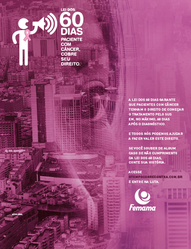 Aproveitando o mês da conscientização mundial sobre câncer de mama, instituição lança campanha assinada pela Geometry Global que estimula população a cobrar o direito de receber tratamento pelo Sistema Único de Saúde em até 60 dias após o diagnóstico de câncer